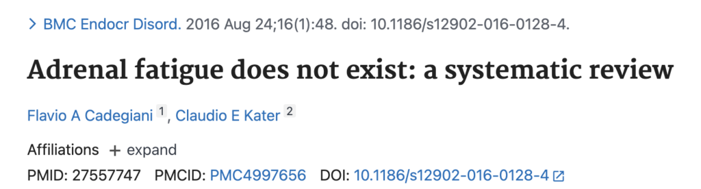 アドレナル・ファティーグをPubMed(論文検索サイト)で調べてみると一番上に出てくるのは「アドレナル・ファティーグは存在しない」と言う論文です。