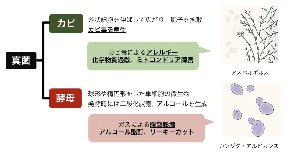 その一方で、カビ毒(マイコトキシン)を出すものも存在します。体がだるくて、有機酸検査でアスペルギルスに問題があったら、カビ毒の詳しい検査をした方がいいです。